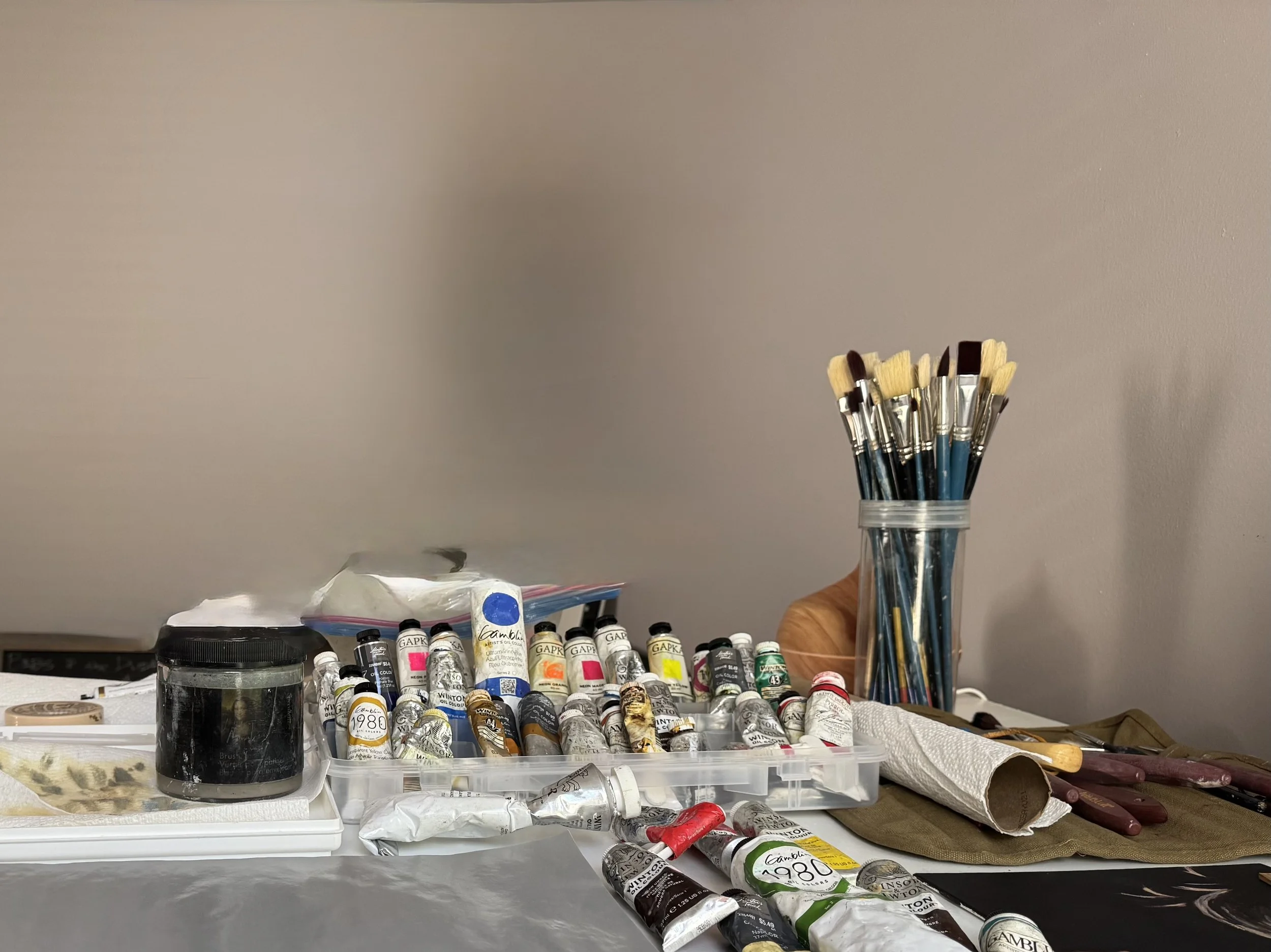 I grew up surrounded by artists, and where curiosity was part of everyday life. After a few life-shaking twists, painting became the place where I stay present, play, and see what happens when I loosen my grip a little.
